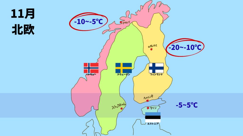- 11月の北欧の気温感が分かり、どのような服装で行けばよいのかが分かる